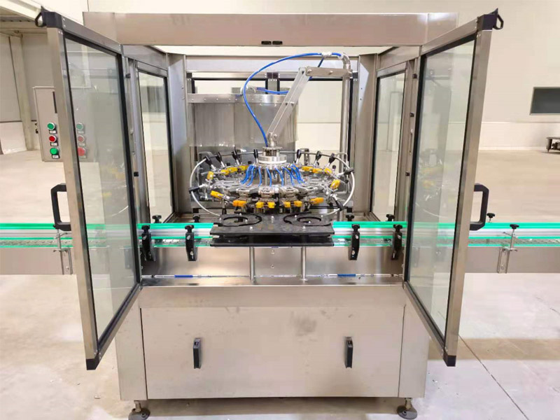 整機采用圓周運(yùn)行翻轉瓶式結(jié)構衝洗,配以進口電氣(qì)控製元件(jiàn)及自動翻轉式(shì)機械手,具有自動夾緊定位瓶口(kǒu)、自動衝洗功能(néng),整體美觀耐用。